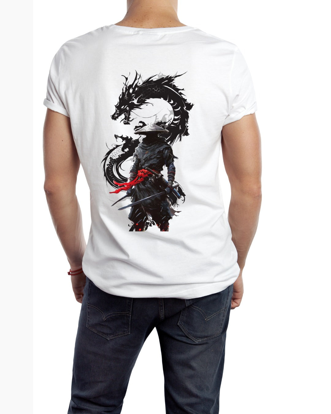 Featuring a striking samurai warrior graphic with a fierce black dragon, this piece is designed for those who love bold, statement-making streetwear. The double jersey construction ensures the fabric feels thicker, softer, and longer-lasting compared to regular tees.